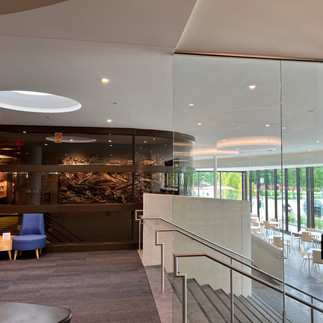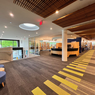 Among the key highlights of the project are a accessible street level entrance which is equipped with an interior ramp and passenger elevator; a 2,000 square foot addition to the library housing a new vending cafe and collaboration space; a centrally located information and checkout desk with integrated holds shelving and self-checkout machines; and 3,000 square feet of renovated interior space with new furniture, flooring and energy efficient lighting.